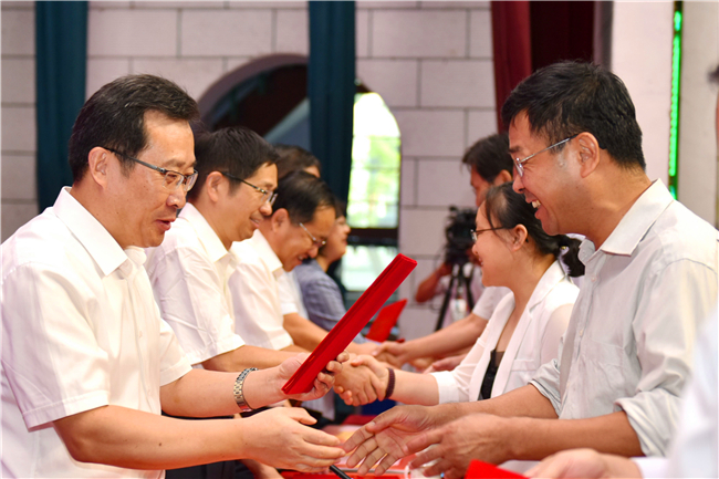 典礼上对获得“山东农业大学优秀研究生指导教师”的老师、第十七届“校长奖学金”的研究生以及入选“创新人才培养”的研究生代表进行了表彰。