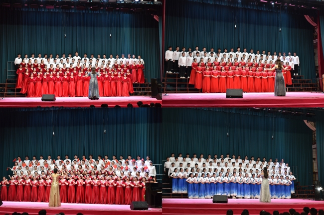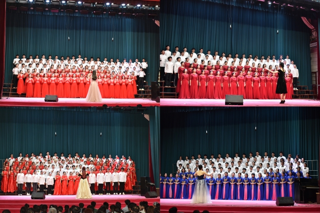 决赛现场,8支队伍分别演唱指定曲目校歌《携手登攀 ,共创辉煌》和一首自选曲目。水土学院一首《复兴的力量》拉开比赛序幕,声音响亮,气势恢宏,点燃了全场热情;经管学院和林学院演唱《我爱你中国》,青春的气息,悠扬的旋律,表达着对祖国和学校的热爱;动科学院一曲《春天的故事》,歌颂了改革开放后日新月异的新气象与气壮山河的新步伐,展现了山农学子紧跟党走,砥砺奋进、勇毅前行的决心;食科学院一曲《在灿烂的阳光下》唱出了同学们对党的赞颂,对祖国美好未来的希冀;农学院、资环学院、信息学院分别演唱了《星辰大海》《一路生花》《我喜欢》,展现了山农青年凝心聚力、团结一致、奋勇争先的良好风貌。比赛结束后,岱下青年合唱团进行了汇报展示。