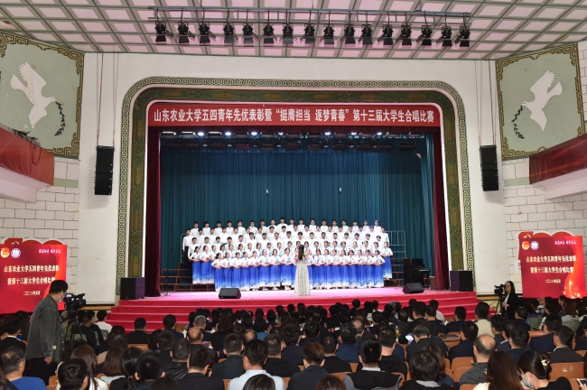 5月6日下午,岱宗校区西礼堂歌声嘹亮、掌声阵阵,山东农业大学五四青年先优表彰暨“挺膺担当 逐梦青春”第十三届大学生合唱比赛拉开帷幕。省委第二十五巡回指导组副组长张荣庆、组员张荣霞,学校领导徐剑波、冷畅俭、嵇景涛、张然、辛杰、李向东、高立明、刘戈、王勇出席活动,并为获表彰的青年先优颁奖。