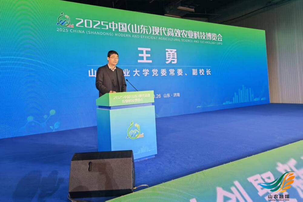 山农融媒10月30日讯 10月26日至27日,2025中国(山东)现代高效农业科技博览会在济南鹊华国际会展中心隆重举行。本届科博会以“科创聚新质 农兴领未来”为主题,汇聚了全国30余省(区、市)的农业科研院所、高校以及300多家参展企业。山东农业大学党委常委、副校长王勇应邀出席开幕式并致辞。