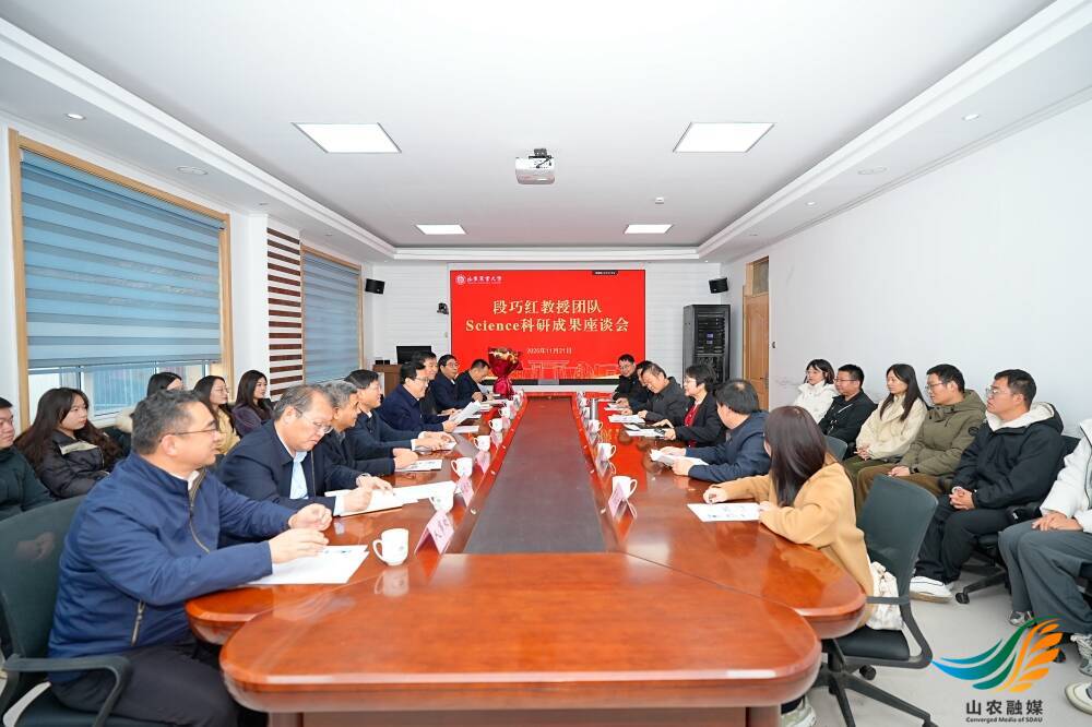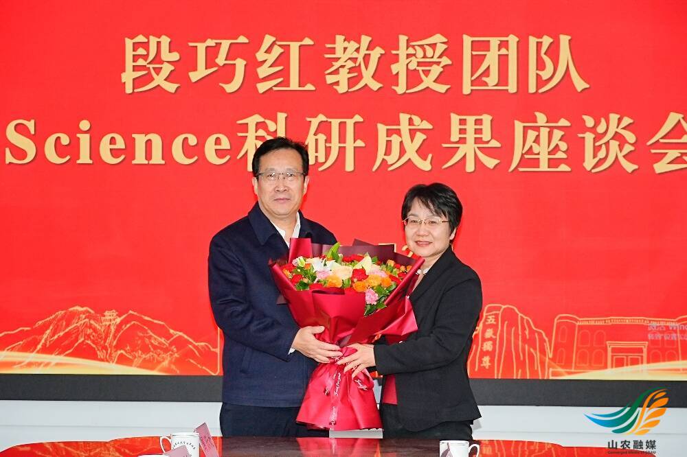 徐剑波对团队取得的重大突破给予高度评价。他说,段老师团队的科研成果在《科学》杂志发表,是学校发展历程和学科建设进程中又一具有里程碑意义的科研突破,有力提振了全校师生干事创业的精气神,有力彰显了新时代山东农业大学的科技实力与创新活力。徐剑波强调,近年来,团队成果三次登上国际顶刊,实现了一系列从“0”到“1”的原始创新突破,这些成果的取得是团队多年心无旁骛、勇于探索、敢为人先的结果,为学校师生树立了很好的榜样,是学校科研精神的典型代表。团队要继续发扬这种精神,再接再厉、再立新功、再结硕果,为社会发展作出更大贡献,为全校师生树立示范标杆。