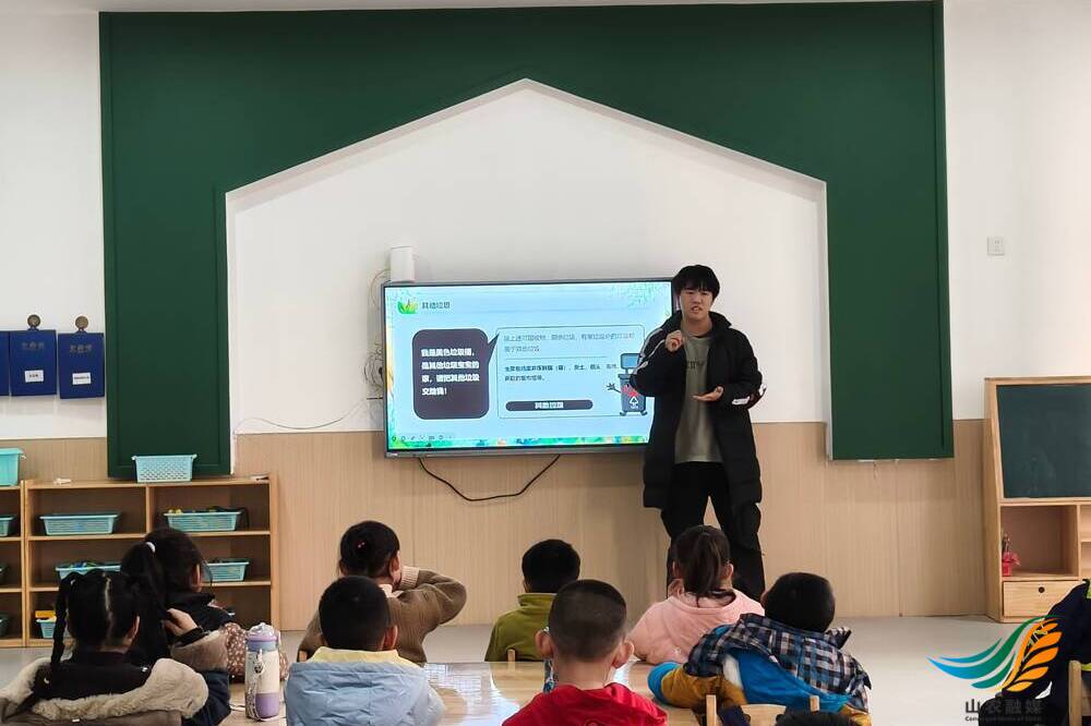 山农融媒12月19日讯 近日,外国语学院二级心理辅导站成员前往宁家结庄幼儿园,开展“环保童心,绿色同行”主题志愿服务活动,帮助小朋友树立初步环保意识,认识垃圾分类的重要性。