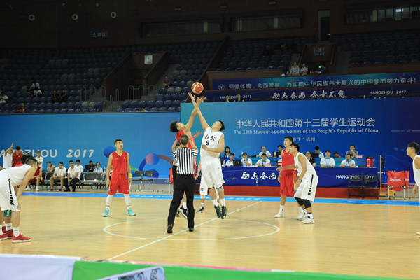 日前,中华人民共和国第十三届学生运动会在浙江杭州举行。经过激烈角逐,以我校男篮为主组建的山东代表队荣获大学组男子篮球比赛第五名的好成绩。