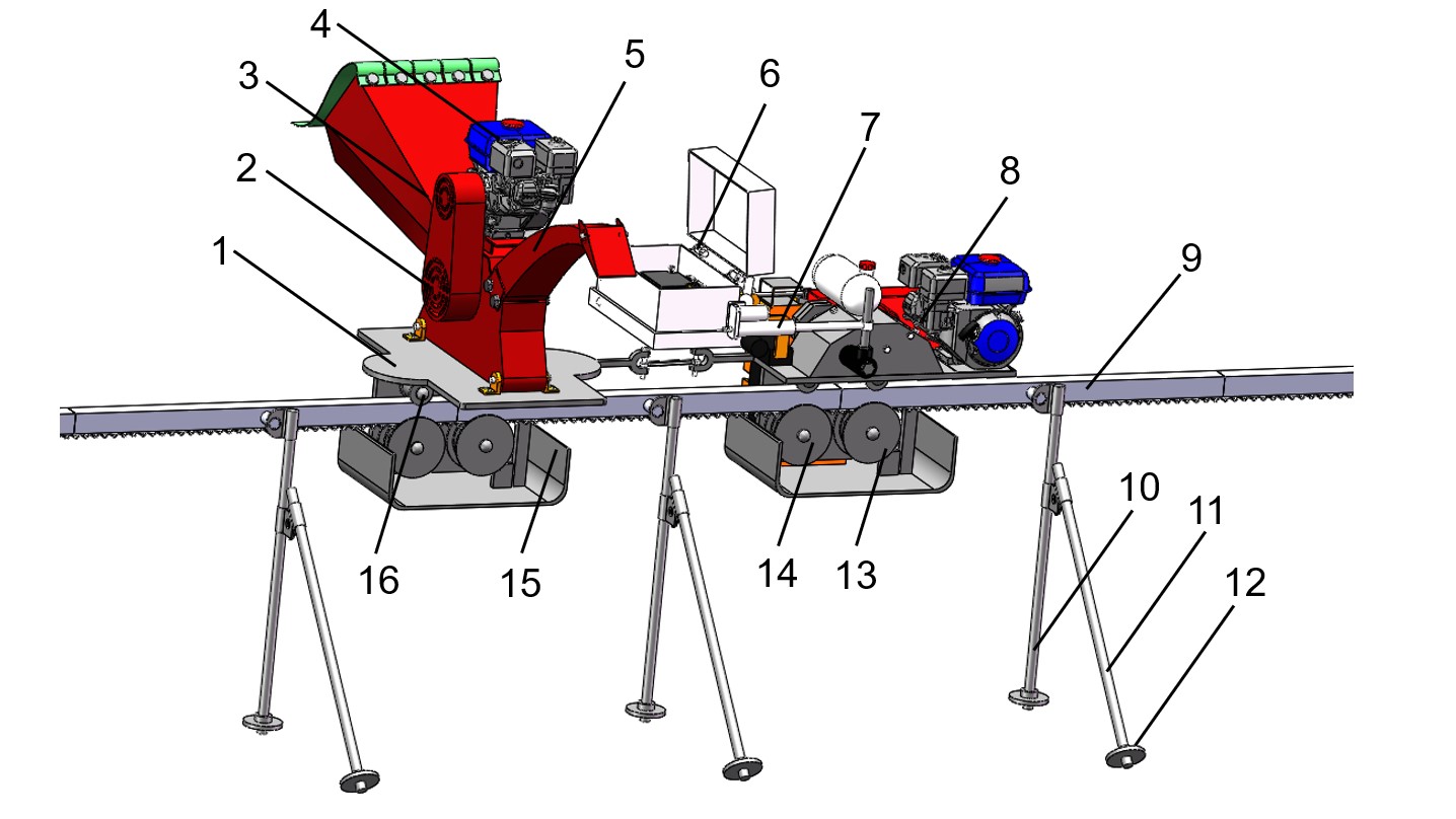 图1. 自走式单轨枝条粉碎机的总体结构