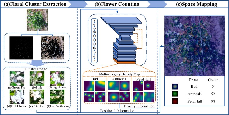 苹果花精准计数对果园产量预测和花期管理具有重要意义,传统的人工随机抽样方法不仅耗时费力,还容易因树间差异导致测量误差。为此,该研究针对果园中无人机图像视角苹果花遮挡严重、像素级标注成本高、花期物候阶段易混淆等实际难题,提出了一种面向苹果花计数与物候识别的不确定性驱动双阶段框架,该框架有效提升噪声环境下的泛化能力,提高了模型在复杂农业场景下的鲁棒性,并通过物候阶段区分模块增强不同花期的判别性,为果园花期自动化管理提供了一种高效、低成本的半监督学习方法,具有重要的应用价值。