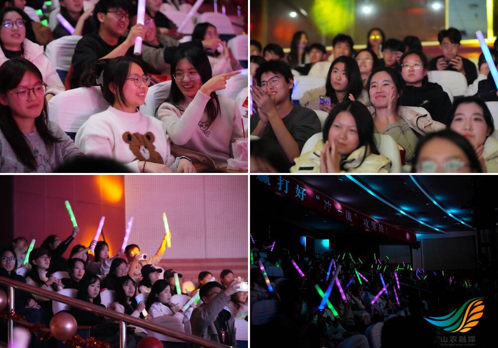 下篇在原创视频《致敬》中开启,在场师生共同回顾过去一年农大人在人才培养、科研攻坚、社会服务等方面的奋斗足迹,深刻感受每个人在学校发展进程中需扛起的责任与担当,引发广泛共鸣,现场响起阵阵掌声。《冬天里的一把火》前奏响起,热烈的歌声点燃现场氛围。学生们深情朗诵的《追风赶月的农大人》铿锵有力,道出师生们勇担使命、誓争一流的生动故事。原创歌曲《值得》用充满活力的真挚舞曲表达出青春奋斗的无悔心声,一段段充满活力的舞蹈串烧展现出青年学子意气风发的青春风采,舞蹈《稼穑情》将晚会气氛推向高潮,彰显出山农学子昂扬向上、团结奋进的精神风貌。晚会在《我们的新时代》歌舞中圆满落幕,寓意着全体山农人正以饱满姿态,共同迎接学校事业发展的崭新时代。